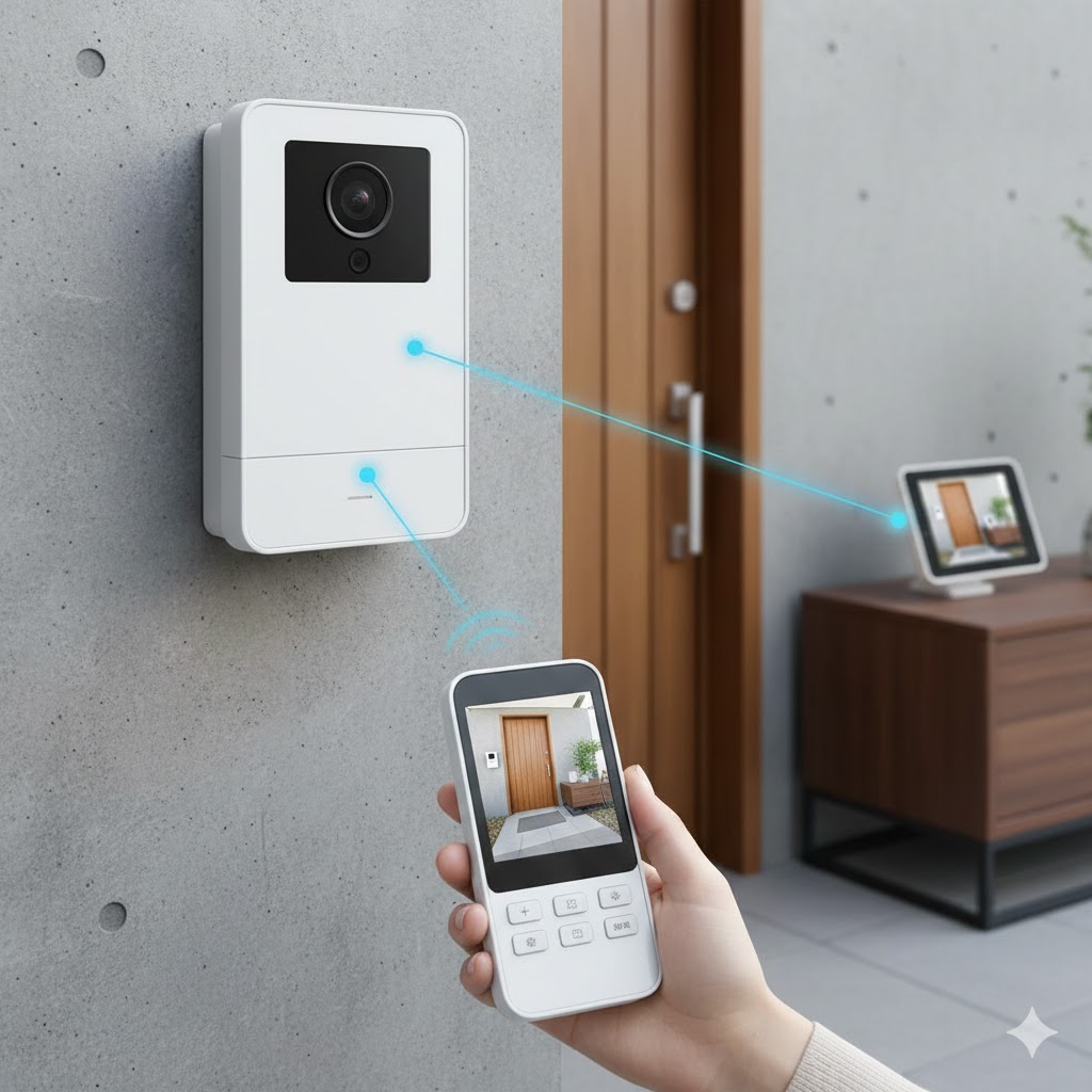 - 親機と玄関子機が無線でつながるため、配線工事が一切不要。