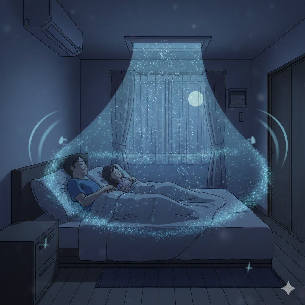 プラズマクラスターイオンが寝心地を誘い安心して眠れます(気分次第ですが!?)