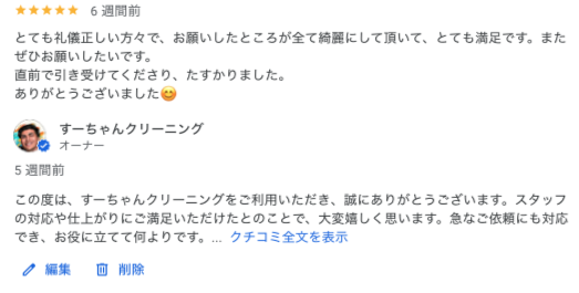 ⇩以下おすすめハウスクリーニング業者の※「すーちゃんクリーニング」ご対応例