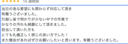実際にハウスクリーニングを依頼したお客様からは、以下のような「感動の声」が寄せられています。