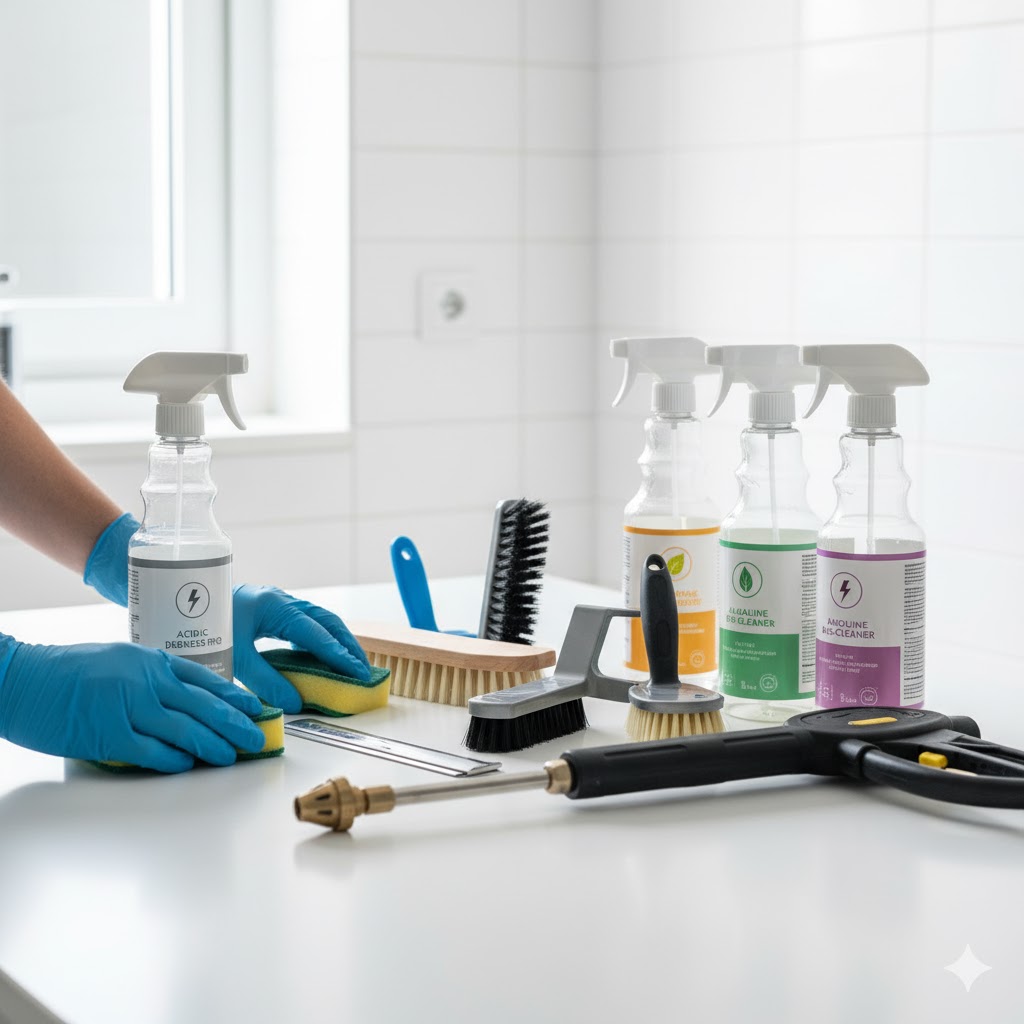 プロの秘密兵器!汚れの性質に合わせた専用洗剤と工具