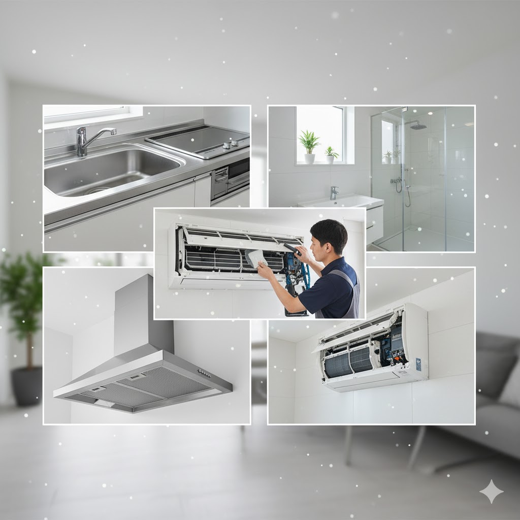 「水回り」といえば、バスルーム、キッチン、トイレ、洗面所が基本ですが、生活空間全体を快適にするために、以下の箇所もパックや単品で依頼できるか確認しましょう。