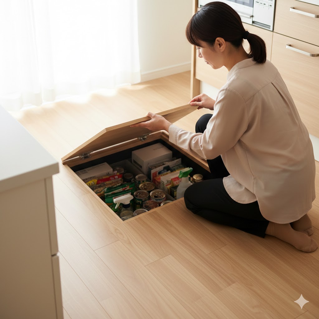 いずれも床下にストック品を保管できるので、収納不足の解消になります。