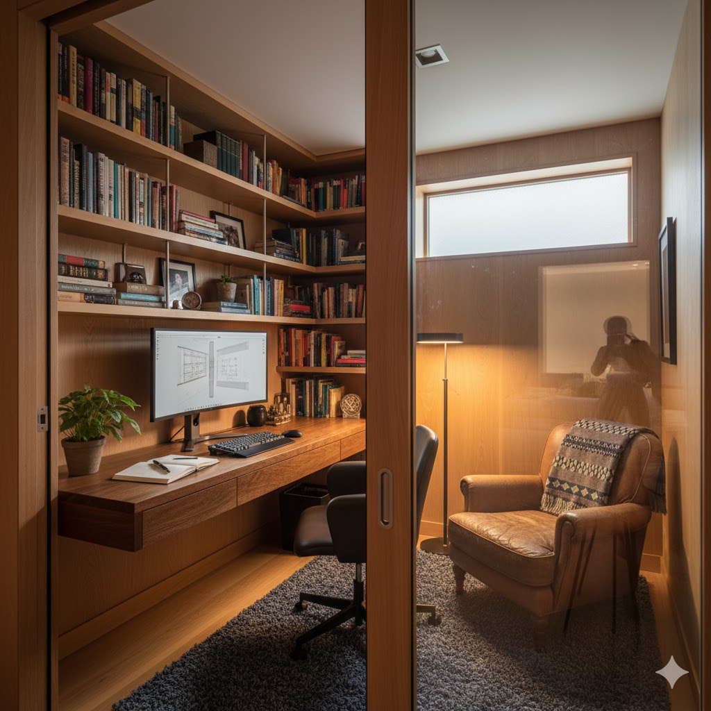 完全個室では無く、寝室の横のウォークインクローゼットを挟んで3畳程度の書斎になります
