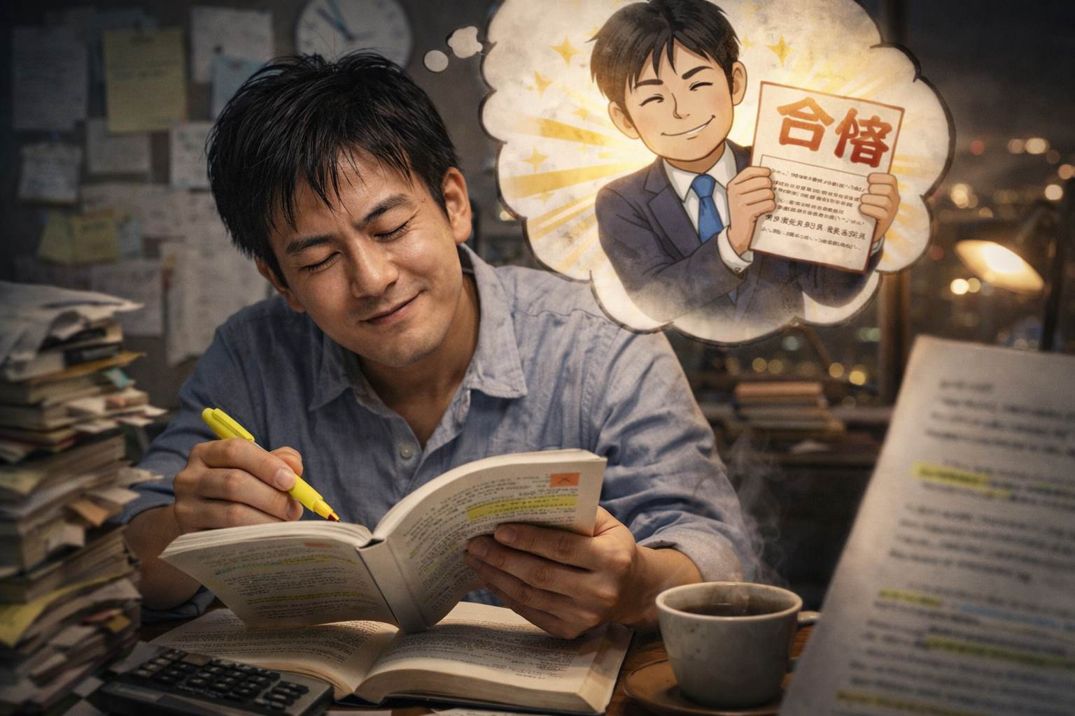 「仕事が終わってクタクタなのに、カフェで必死にテキストを開く」 「家族が寝静まったあと、眠い目をこすりながら過去問を解く」